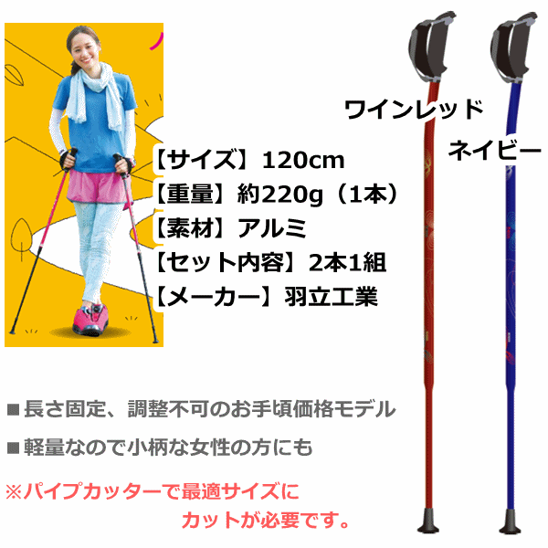 【重量】約220g(1本) 【グリップタイプ】自然体グリップ(ディフェンシブタイプ) 【対応ポールキャップ】丸型・フィット型 【色名】ネイビー、ワインレッド 【セット内容】2本1組 【材質】アルミ 【メーカー 】羽立工業 注意事項 商品画像は色合いや素材感が実際の商品と異なる場合がございます。