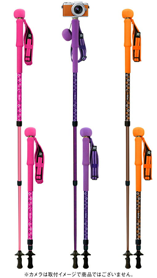 商品の仕様 ●カラー/ピンク、パープル、オレンジ ●サイズ/115cm: 90-115cm ●対応身長/約142‐180cm ●収納サイズ/55cm ●調節/回転固定式 ●重さ/約235g(1本) ●最大耐荷重/43.4kgf ●材質/超軽量アルミ(φ16+φ14.3+φ12)、グリップ:発砲EVA ●先ゴム/PP-20 ●生産国/日本製 ●メーカー/シナノ --------------------------------------------------------- 山ガール トレッキングポール山ガール トレッキングポール On Anise(2本1組) 可愛くて、機能的で、楽しい!! 女性のわがままを叶える、夢のトレッキングポール。