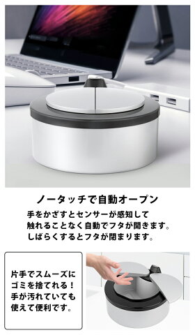 数秒で自動に閉まるのでゴミ捨てラクラク! ■デスクや卓上にちょうどいい 直径20cmのサイズでデスクやテーブルに置けます。